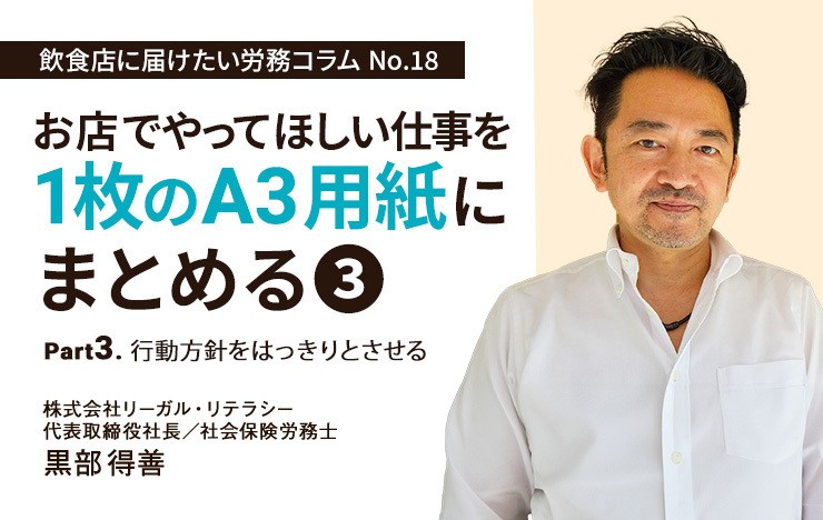 第18回ã¯ã€ã€ŽãŠåº—ã§ã‚„ã£ã¦ã»ã—ã„仕事をA3用紙1æžšã«ã¾ã¨ã‚ã‚‹ã€ã‚·ãƒªãƒ¼ã‚ºã®ç¬¬3弾。「行動方é‡ã‚’ã¯ã£ãりã¨ã•ã›ã‚‹ã€ã‚’テーマã«ãŠå±Šã‘ã—ã¾ã™ã€‚